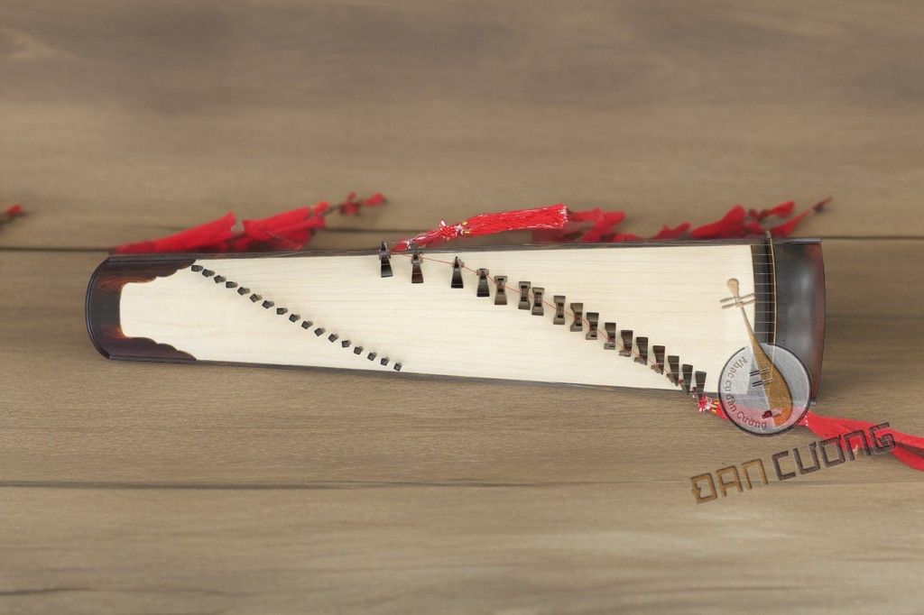 - Chất liệu: thân đàn gỗ mun, mặt trên và dưới bằng gỗ ngô đồng.