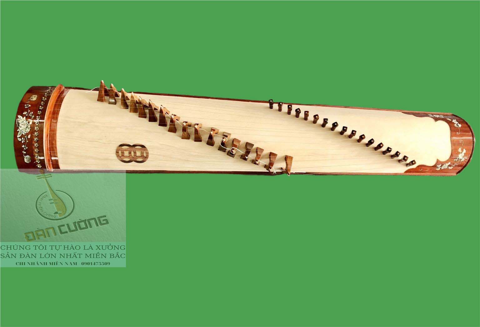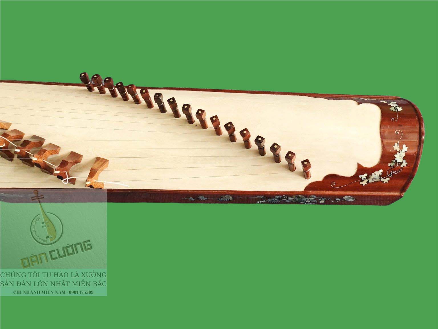 Đàn tranh hình hộp dài. Khung đàn hình thang có chiều dài 116 cm. Đầu lớn rộng khoảng 24 cm là đầu có lỗ và con chắn để mắc dây. Đầu nhỏ rộng khoảng 15cm gắn 17 khóa lên dây chéo qua mặt đàn. Mặt đàn làm bằng ván gỗ ngô đồngdày khoảng 0,05 cm uốn hình vòm. Ngựa đàn (còn gọi là con nhạn) nằm ở khoảng giữa để gác dây và có thể di chuyển để điều chỉnh âm thanh.