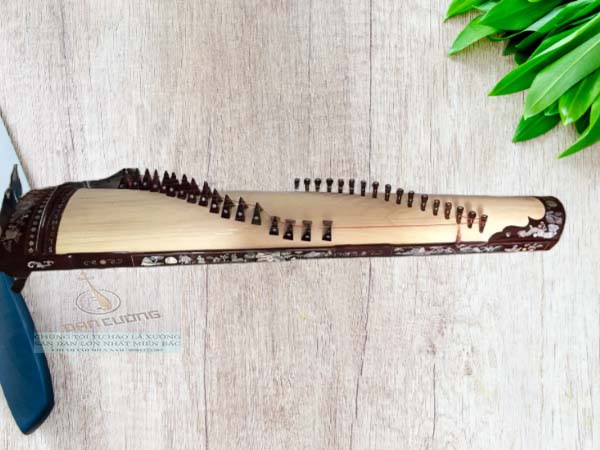 Đàn tranh cẩn ốc xà cừ được trang trí bằng các hoa văn quen thuộc màu trắng bạc. Ngựa đàn là bộ phận được sử dụng để gác dây cũng được làm từ chất liệu có độ bền cao. Dây đàn được làm từ kim loại và có kích cỡ khác nhau; tạo ra các âm thanh có tone khác nhau. Đàn tranh cẩn ốc xà cừ thường là lựa chọn của các nghệ sĩ chơi đàn tranh chuyên nghiệp. Để chơi được đàn tranh, các nghệ nhân thường sử dụng các móng gảy làm từ kim loại, sừng hoặc đồi mồi.