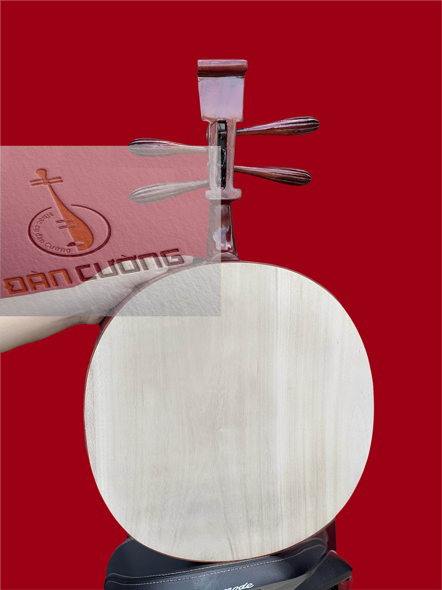 Đàn tứ tròn làm từ gỗ hương. Thùng đàn hình tròn dẹt, Rộng 37 cm dài 60 cm. Mặt đàn làm từ gỗ ngô đồng, nhẹ và xốp. Cần đàn ngắn được làm từ gỗ cứng . Đàn có 10 phím bằng tre với 2 phím được gắn trên cần đàn và 8 phím còn lại được gắn trên mặt đàn. Phía cuối cần đàn có gắn 4 trục gỗ xuyên ngang qua hai bên thành đàn để mắc dây đàn và lên dây đàn. Đàn tứ tròn khi xưa có 4 dây, 2 dây to cùng âm và 2 dây nhỏ cùng âm nên ngày nay các nghệ nhân chỉ mắc 2 dây trên trục làm từ cước.